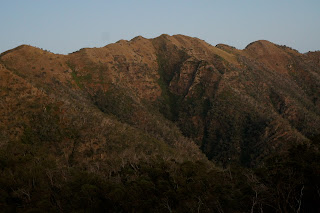 I awoke to a clear night, and brewed some coffee in very frosty conditions before heading off by head-torch at 6 am. First light through the snow gums was beautiful with clouds sitting above the Barry Ranges in front of the Blue Rag Range. Got to Vallejo Gantner by dawn, and then first light on the Cross-Cut Saw just after 7. It felt good to be exercising in eucalyptic mountain air again.