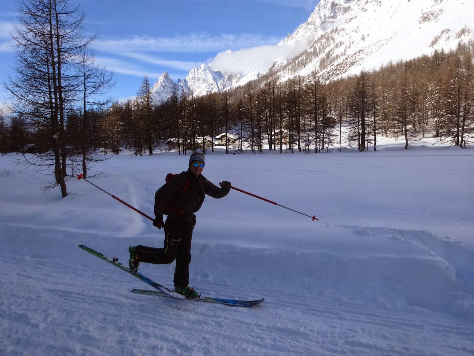 We then headed up the Malatra Valley, the path of which is actually a part of the Grand Tour du Mont Blanc. The fresh snow was a little wind packed, very compressible, and thus extremely tough to cut tracks in. Leading was exhausting, and whilst comfortable to break trail for a while, eventually I let Jerome and his superior physiology take over for the majority of the 1300m climb.